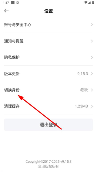 3、在设置页面点击切换身份选项,进入身份切换页面。