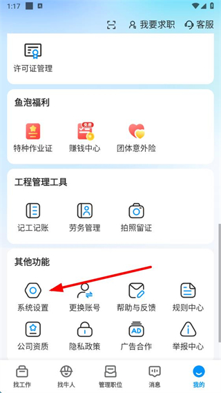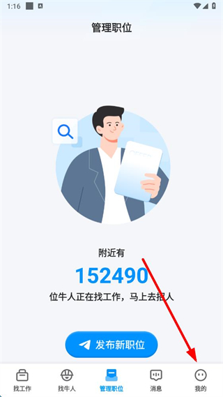 1、在鱼泡直聘app界面点击我的选项,进入个人页面。