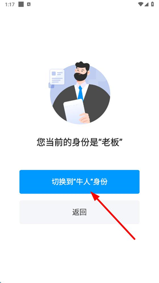 4、在身份切换页面点击切换到牛人身份按钮,即可完成招聘者身份切换。