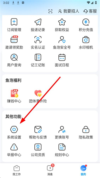1、在鱼泡网个人页面的其他功能区域,找到系统设置选项并点击,进入设置界面。