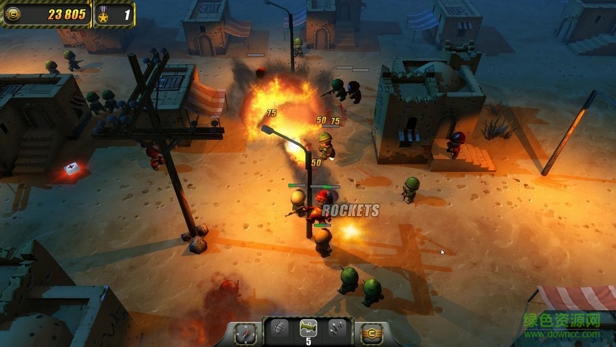 小小部队是一款3D射击游戏,游戏采用3D的上帝视角,玩家将操控3支部队在长达30个任务中完成一系列挑战。游戏中的微型战争表现出了战争游戏的残酷与策略性,随着关卡的推进,你的部队会越发强大,获得新的武器装备,以便于在下次任务中活下去。喜欢的小伙伴快来绿色资源网下载吧!