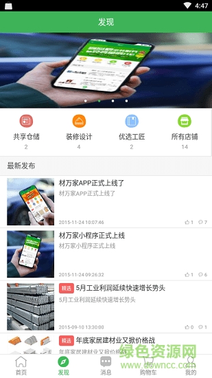 材万家是线上家装商品购买软件,厨房家具电器五金制品等多种商品供你选择,价格优惠品质有保障,平台和多家建材市场合作,让你采买更加方便,在线报价,一切都可以通过app来查看咨询,需要的用户快到绿色资源网下载体验吧!
