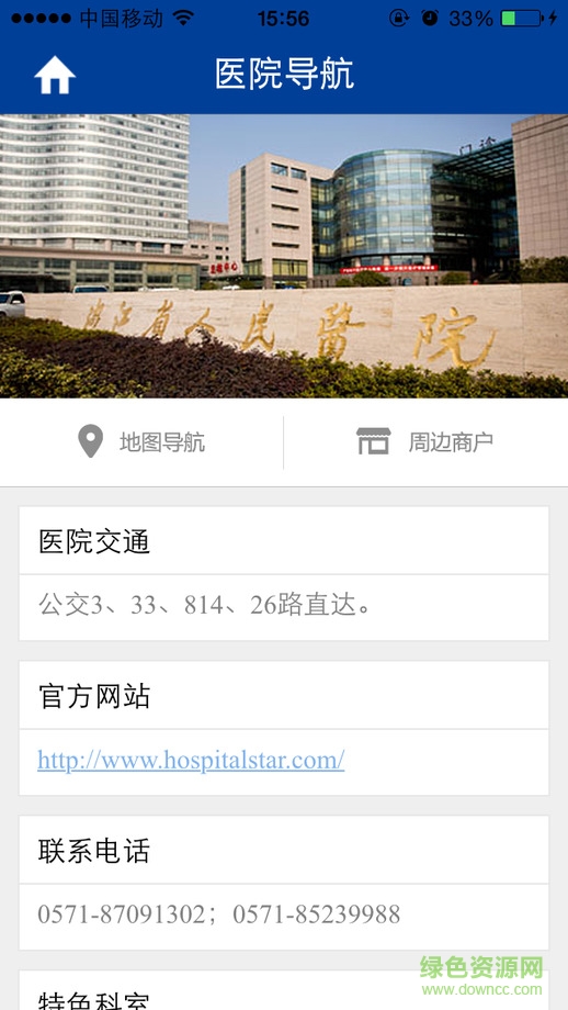 2.医院导航:院外线路导航、院内科室分布、周边商户一网打尽;