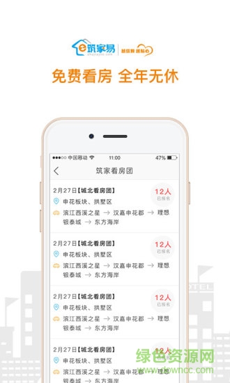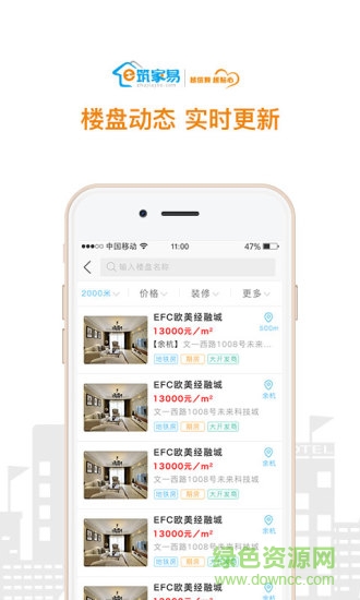 筑家易app是一款为用户打造的买房平台。在线为用户专业解读楼市走向,为购房者推荐性价比的好房源,海量楼盘资料,这里应有尽有,实时更新每个楼盘价格、开盘、活动、优惠等动态,不错过一个活动,不损失一个优惠。喜欢就来绿色资源网下载体验吧!