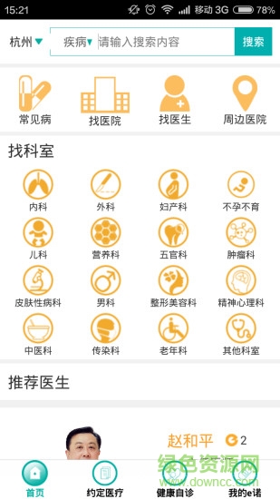 患者可以通过常见病、找医院、找医生、找科室、自诊方式选择适合的医生或者医院继续约定就诊。