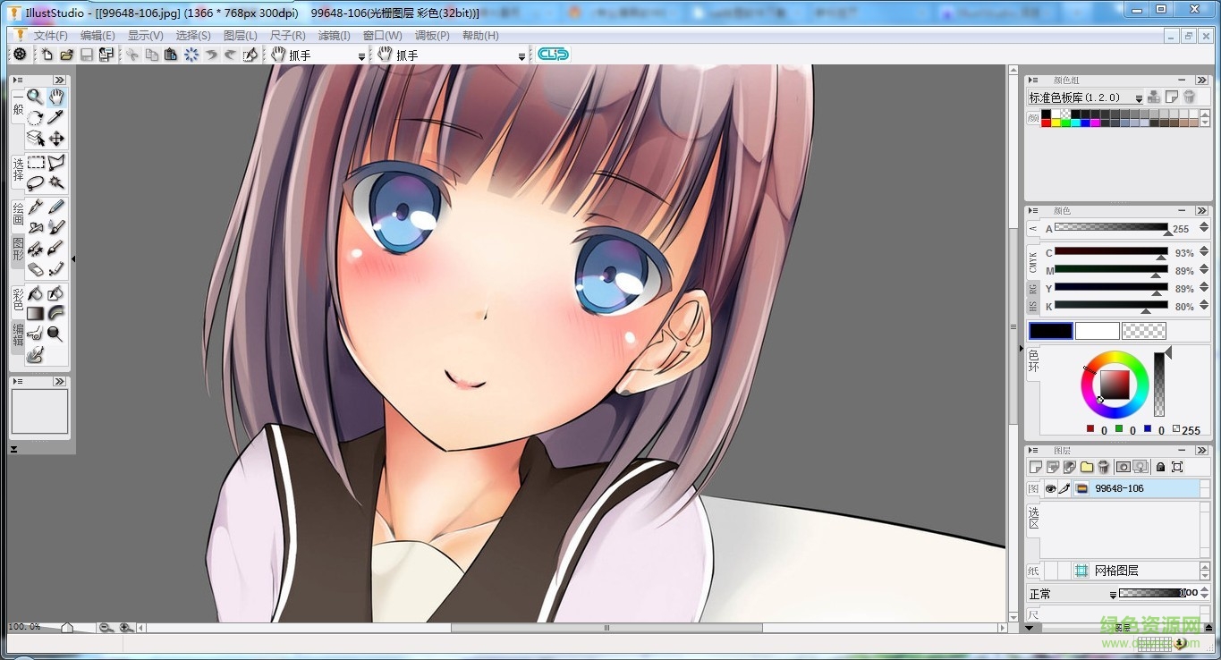 具备自动控制颜色扩散功能。因为上色时要求颜色不超出轮廓线,以往的软件都是先要制作一个选区。但是is裏面具备一个功能,直接支持上色时不会超出之前画好的线稿。