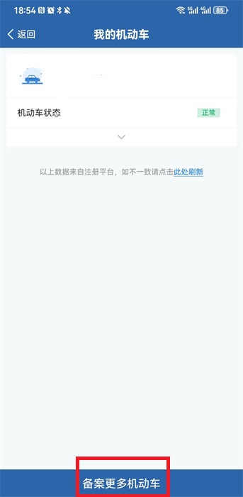 2、在此备案中我们可以点击下方的【备案更多机动车】去进行非本人的机动车备案操作;