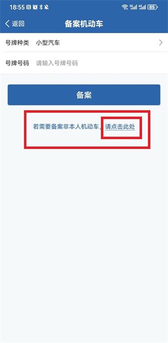 3、然后在备案的界面之中,点击其中的【若需要备案非本人机动车,请点击此处】去进行备案;