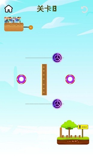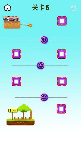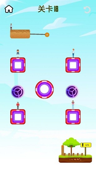 1.你要做的就是利用绳索传动的物理原理,将绳索运送到指定位置,尽量避免碰到障碍物;