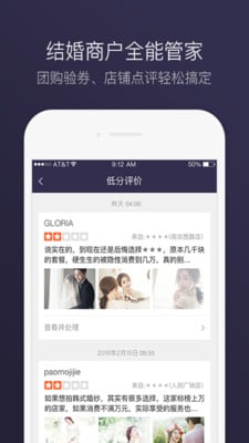 3、 口碑管理&团购验券:通过手机端,及时回复用户的点评。并在可以在任何地方验证团购&闪惠。
