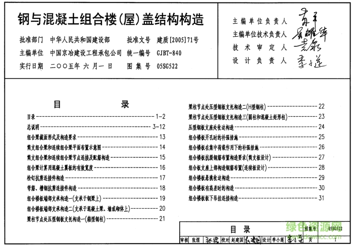 05sg522图集是一款国家建筑标准图集,本图集由京冶建筑工程主编,主页内容包括了组合梁和组合板的设计与构造,绿色资源网为大家分享pdf05sg522图集免费下载,需要的就拿走吧。