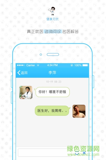 健康无忧app是一款为用户打造的医疗咨询平台,在线为您解答各类疾病的原因,疾病的症状,以及治疗方案,一对一为您服务,解除您身体心理上的疑难杂症,让您身心健康!喜欢就来绿色资源网下载体验吧!