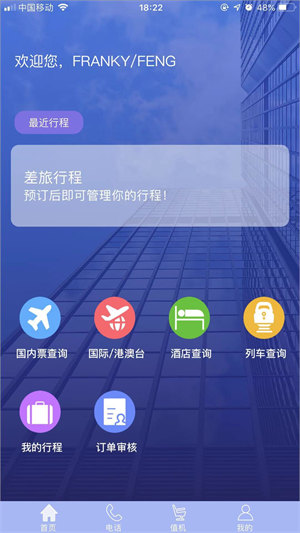 - 在政策和公司价格范围内搜索和预订机票、酒店和国内铁路