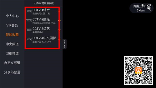3、进入我的收藏页面后,即可查看已收藏的频道列表。