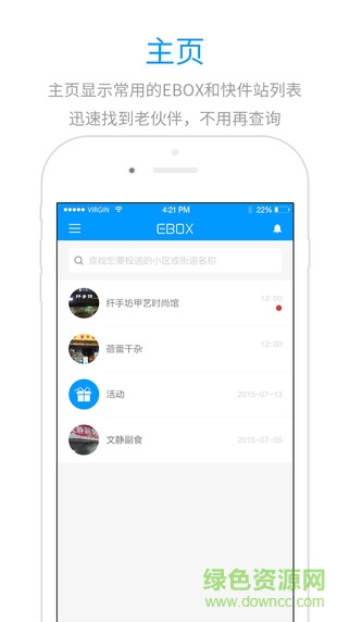 主页显示常用的易泊快递柜和易泊快件站列表,迅速找到老伙伴,不用再查询。