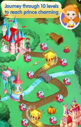 游戏中你将帮助公主们,给她们梳妆打扮。把一个个灰头土脸的灰姑娘,打扮成引人注目的白雪公主,然后去参加王子举办的晚宴。只有帮助一个公主打扮完毕,才能进去下一个关卡哦~