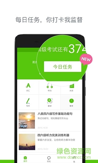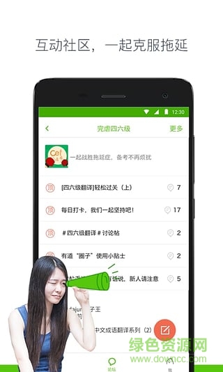 有道四六级app是有道学堂精心打造的一款四六级备考软件,这里面主要包括了听力真题、快速模考等训练,用最短的时间帮助你提高英语听力能力,有需要的童鞋们快来绿色资源网下载学习吧,最后预祝所有考生都能顺利通过2016四六级考试!