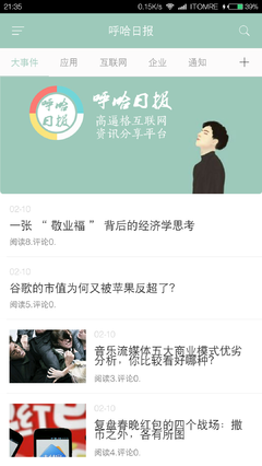 呼哈日报app是一款高逼格的资讯阅读软件。每天为用户推送最新的新闻资讯,你可以在线查看、收藏感兴趣的资讯内容。还可以在线评论、吐槽、转发等等。随时随地高逼格!欢迎用户来绿色资源网下载体验!