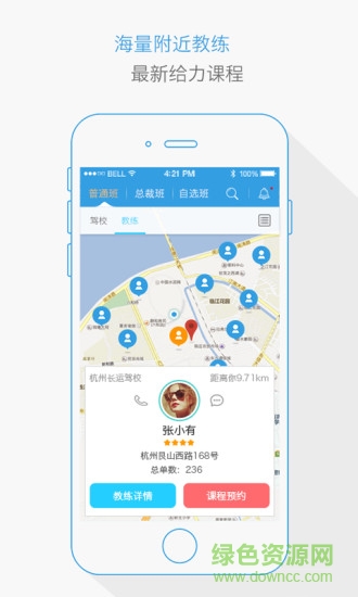 找教练教练版app是专门为了教练准备的一款学车管理app,在这里教练可以管理找教练的学员,自动激励每天的工作,快速安排学员课程,自由设置收费,场地,时间,以及课程,帮你成为优秀教练。让你每天收入看的见。喜欢的小伙伴快来绿色资源网下载吧!