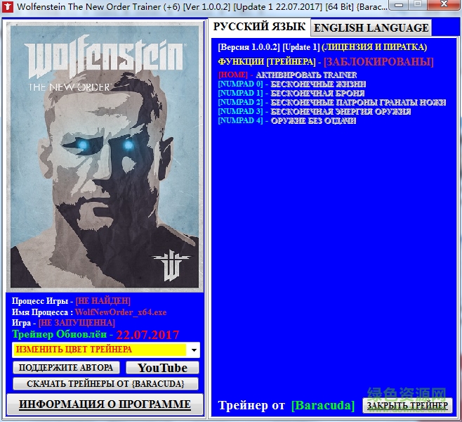 德军总部新秩序六项修改器是一款功能强大的游戏修改器,使用修改器玩家可以一键修改游戏的某一程序及某一程序文件,轻松达到各项属性修改器功能,快来绿色资源网下载使用吧!