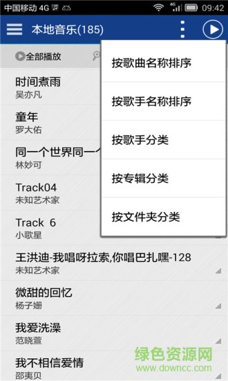 8.歌曲分类,按文件夹、歌手、专辑分类。