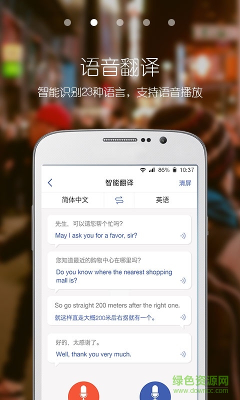 支持23种语言的语音或文字识别,智能翻译,语音可自动播放
