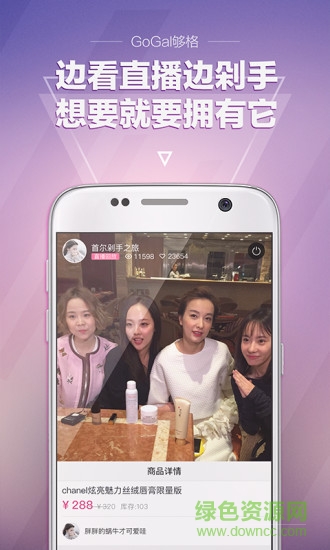 GoGal够格app是一款非常有创意非常有逼格的女性时尚直播购物平台,一看看直播,一边买东西,很不错的新体验,用过很多直播app,全部都是在作秀,一点都不走心,这个就完全不同了,能够从直播中学到很多东西,非常赞,感兴趣的小伙伴们快来绿色资源网下载吧。