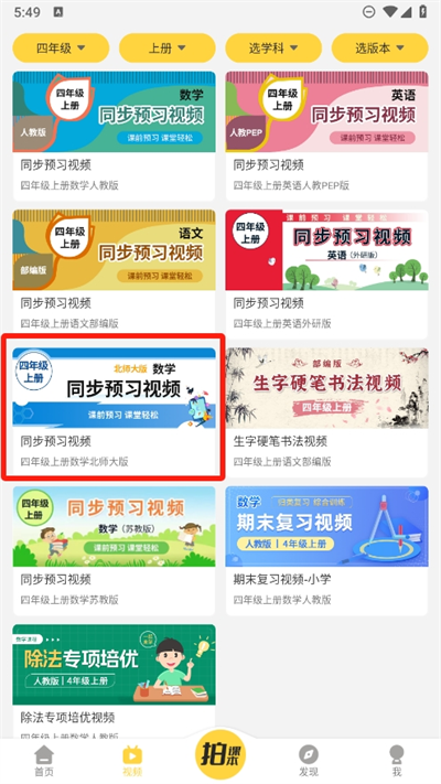 3、选择好自己想要查找的学科内容条件后,直接进入软件可以搜索到相关的视频内容点击进入;