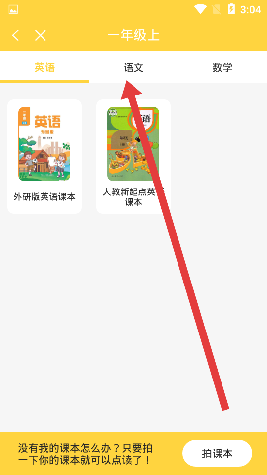 3、可以同时添加三个科目的课本,例如英语、语文、数学,可以先切换到英语标签选对应英语课本依次添加。