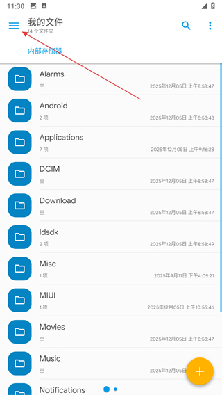 1、打开SE文件管理器,进入我的文件界面,点击黄色+按钮。