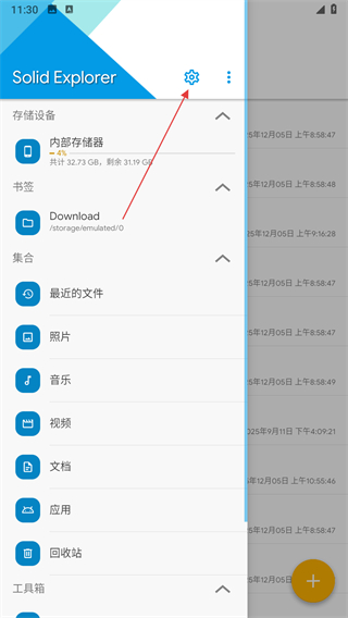 2、在侧边栏菜单,找到设置选项并点击,进入SE管理器的设置页面。