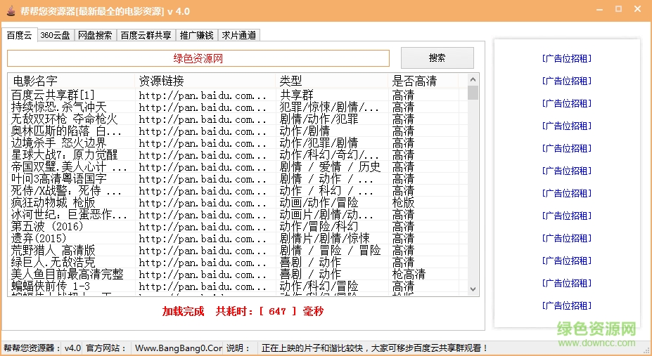 帮帮您资源器是一款网络BT资源搜索神器,使用这款软件能够帮助你搜索网络上最新的影视资源,支持百度云盘资源搜索,360云盘两大网盘搜索,功能强大,想看什么有什么,欢迎大家下载使用