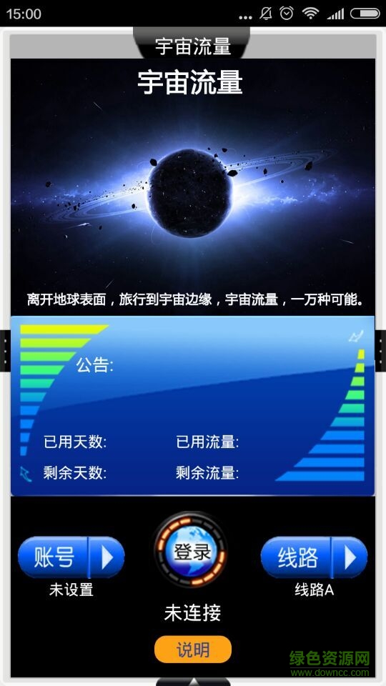 宇宙流量是一款低价买流量的软件,这款软件可以让你低价购买手机流量来上网,在每个月流量出现不够用的时候,你就可以在线充值购买。可以以更低的价格购买流量使用!欢迎用户在绿色资源网下载使用!