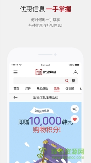 何时何地尊享推送等级优惠消息和现代百货免税店的各种活动及折扣活动消息。