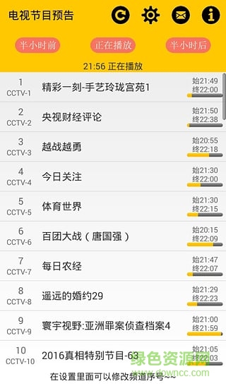 电视节目预告是一款专为喜欢看电视的朋友打造的节目预告app,今天放什么,明天放什么,天天电视节目早知道的,喜欢的赶紧来绿色资源网下载吧
