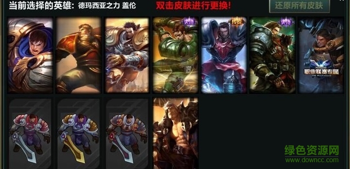 3.如图:进入游戏后,英雄选择完毕后,点击小插件,双击需要应用的皮肤即可进行安装