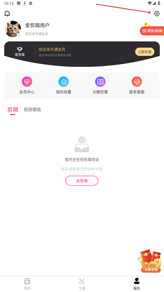 1、打开爱剪辑App,点击底部导航栏的我的,进入个人页面。
