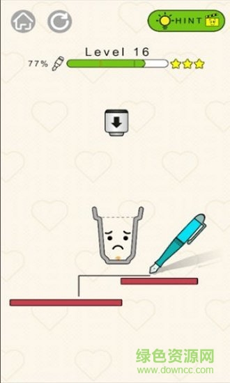 装满它是一款非常好玩的物理玩法的解谜类手机游戏。游戏中玩家需要通过划线来进行闯关,不要让物体挡住杯子,然后将水全部灌倒杯子里,具有一定的真实物理原则,非常的有趣呢,而且装满它游戏的画风也背景音乐也都十分休闲,画面为简笔画风格,玩法简单有趣。