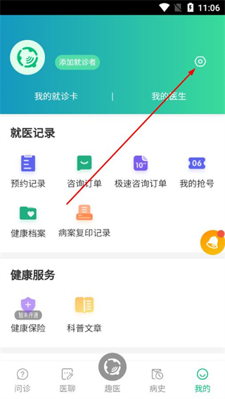 1、打开趣医院app,点击底部导航栏的我的选项。