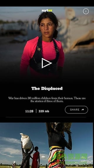 目前NYT VR中提供了五段视频内容供受众观看,其中最主要的一段视频名为The Displaced,时长达到11分08秒。它讲述了三个小孩——11岁的乌克兰男孩Oleg、12岁的叙利亚女孩Hana以及9岁的南苏丹男孩Chuol——在战乱中生活的故事。这是一个充分发挥VR技术优势的内容,由于战乱并非人们生活的常态,借由VR技术能够让人们体验到完全不同的环境,这种内容的选择思路让它能在短时间内吸引注意。