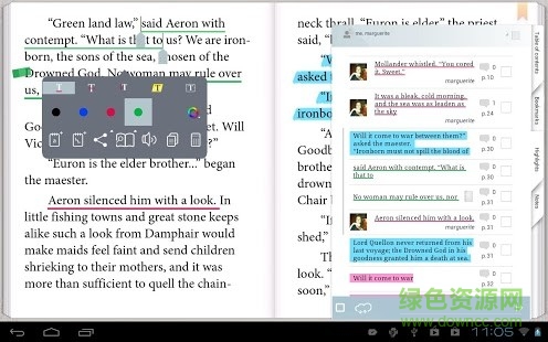 可以高亮重点内容,创建文字或者图绘笔记,享受朗读,还可以通过本地或在线词典搜索单词。