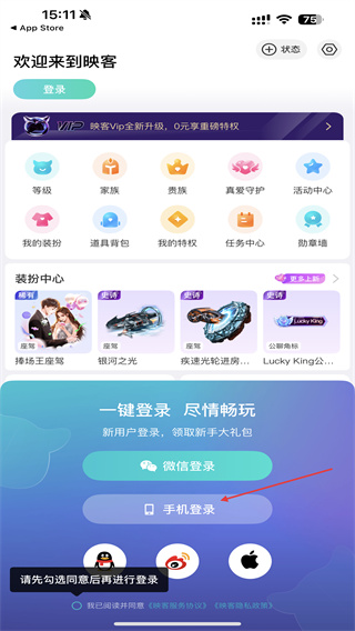 3、在下方弹出的登录方式中,选择并点击手机登录的按钮即可跳转至该页面。