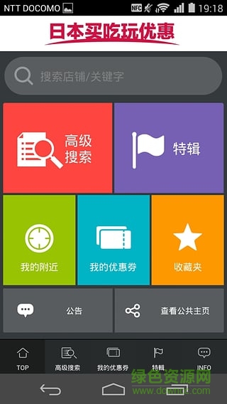 日本买吃玩手机版是一款游玩日本不可缺的app,软件有GPS定位功能,让你一键就能清楚周围店家和优惠券,且领取额优惠券有双语功能,让店员和你沟通无障碍,欢迎来绿色资源网下载。
