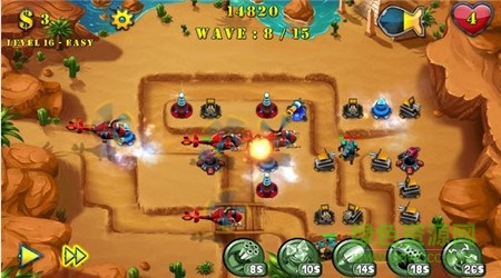 《塔防进化2 Tower Defense Evolution 2》是一款卡通化的塔防类游戏。游戏中,你负责排兵布阵,将所有妄图侵略你的家园的敌军全部消灭。利用各种错综复杂的地形,和你各种炮塔的游戏,看你能阻止多少敌军!