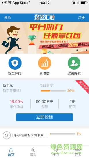 洛邑汇融客户端是由洛邑汇融官方网站发布的一款掌上借贷理财平台,拥有大量优质靠谱的理财产品,门槛低,1000元起理财,信息真实可靠,交易安全规范;同时还支持借款、债券转让。现在下载注册即可获得20000元体验金,还在等什么!