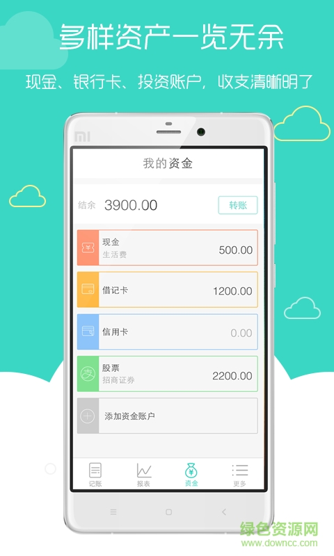【资金管理一账通】现金、储蓄卡、信用卡、支付宝和股票等资金账户一手掌握。您可查看每个账户的支出与收入流水,随手记账为您自动计算每个资金账户的收支,让你的资产管理愈加灵活方便。