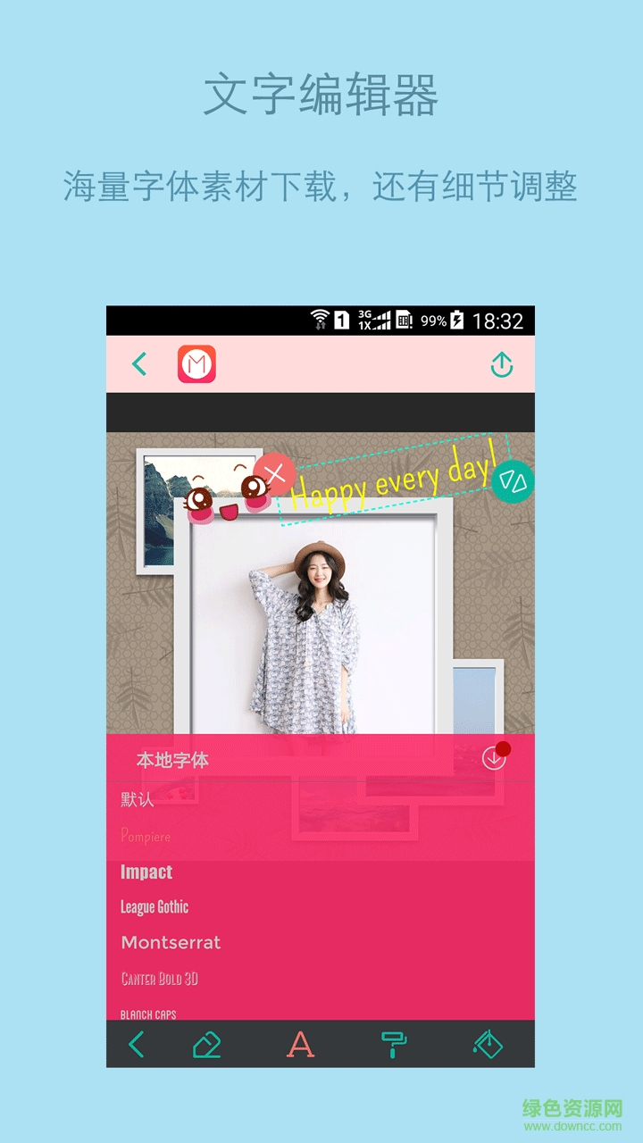 3.文字编辑器:海量字体素材下载,细节调整文字颜色和排版!
