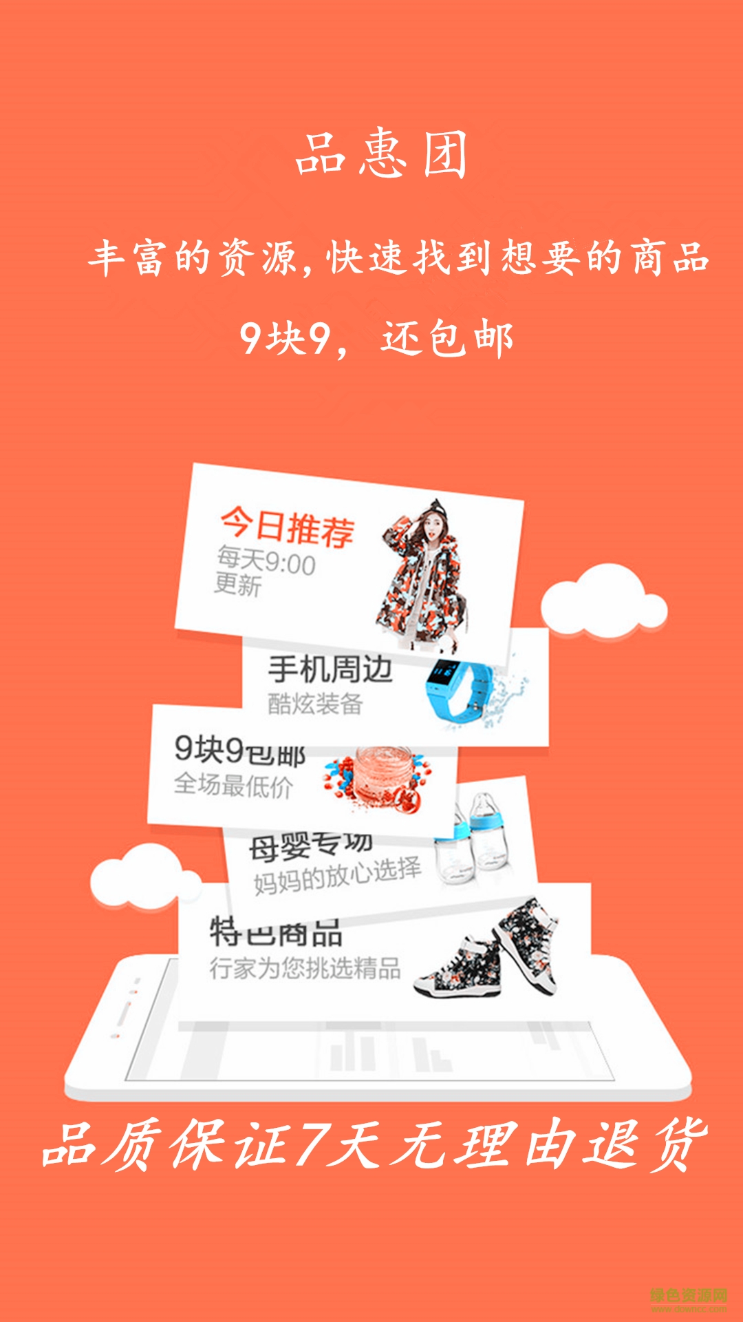 品惠团app是一款帮助网友们快速找到最物美价廉的商品的购物平台,到时用户不必在淘宝网中到处搜索,且我们还会积极与淘宝卖家沟通合作,为网友们提供更多优质的折扣商品。如果想买便宜又使用的物品,快来绿色资源网下载吧。