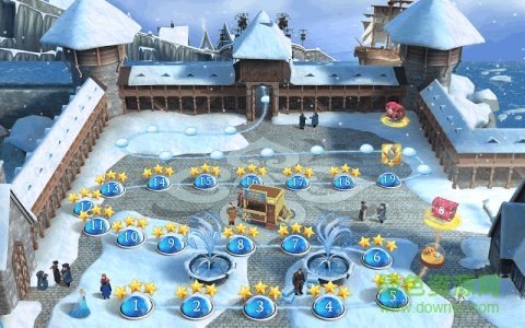 在碰到难关的时候也无需担心,游戏内提供了各种增益道具(闯关时有几率获得,也可氪金购买),能够给玩家带来极大帮助。那些道具有的能够预测下一枚射出雪球的前进路径,其他的还有火焰球、大雪球等等,再加上艾莎的雪花炮打出的魔法雪球,都是能一发消除大量冰砖的好帮手。至于游戏画面、特效也无需担心,完全延续了迪士尼家族游戏精致好看的优良传统。