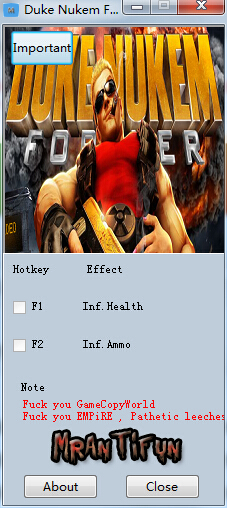 永远的毁灭公爵两项修改器是一款可以帮助玩家进行无限生命和无限子弹作弊的修改器,主要为玩家提供各种修改器功能服务,让玩家尽情体验游戏的乐趣,有需要者欢迎下载!
